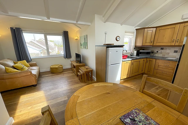 You'll find a beautifully appointed open-plan living space, complete with a well-equipped kitchen and a cosy sitting area for intimate evenings.