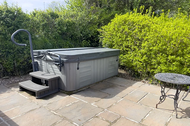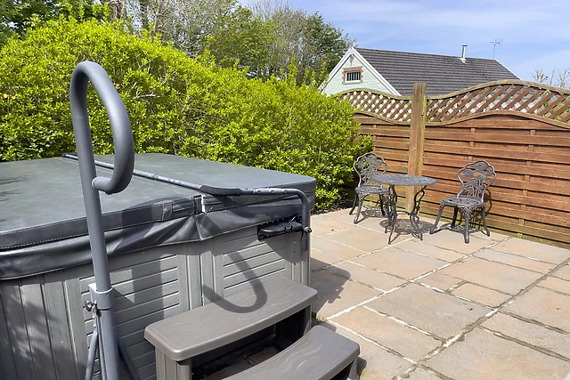 Yes, the cottage boasts a private hot tub on the patio, providing an indulgent space for relaxation and romantic moments under the night sky.