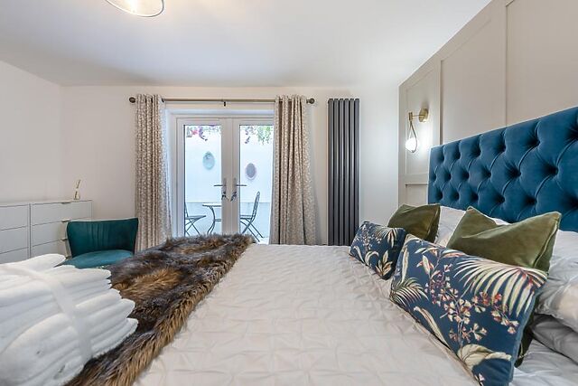 Two stylish bedrooms are located on the ground floor – a king-size room with garden access, and a twin bedroom, both sharing a spacious bathroom. Upstairs, you’ll find two sumptuous king-size bedrooms, each uniquely decorated and featuring its own en-suite shower room for ultimate comfort and privacy.