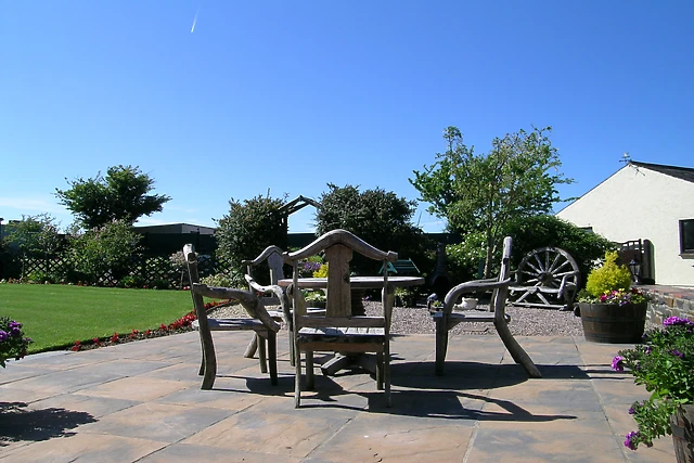 Yes, there is a paved terrace in front of the cottage with garden furniture and a BBQ, perfect for outdoor dining and relaxation.