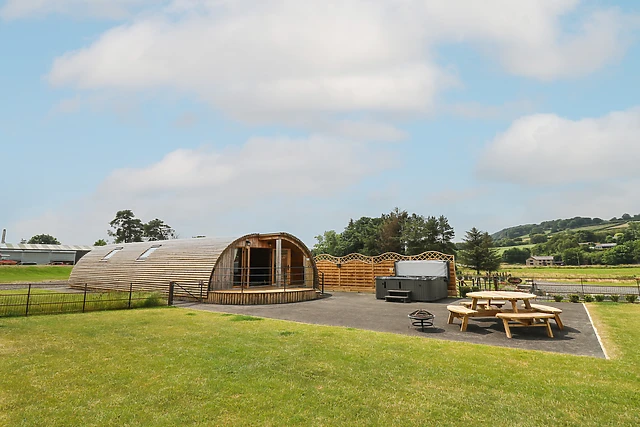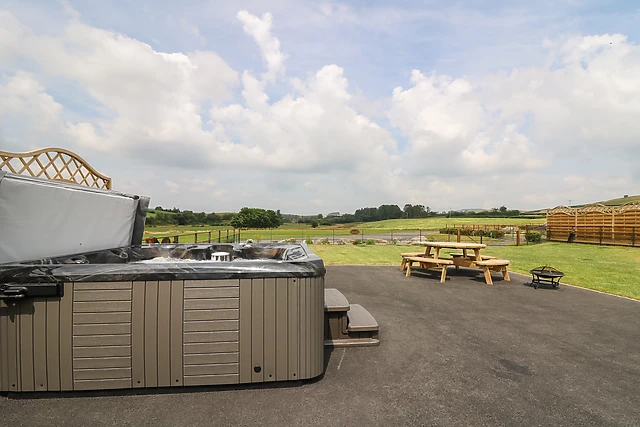 Yes, the accommodation boasts a private hot tub located on the decking area, perfect for unwinding after a day of exploring the Welsh countryside.