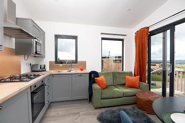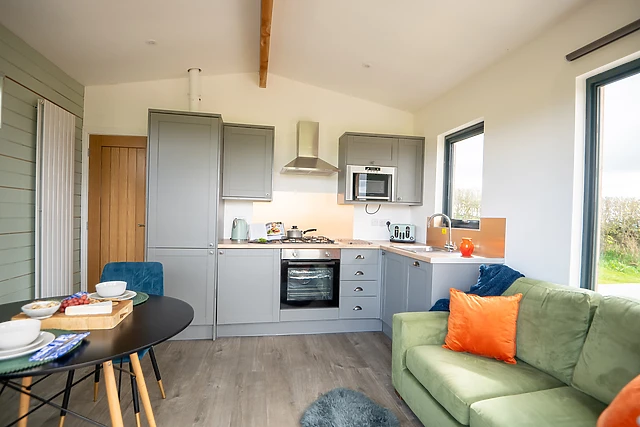 Step inside this delightful lodge nestled in the tranquil countryside of Mid Wales. The open-plan living space is a welcoming area for relaxation and dining, with a well-equipped kitchen to whip up a delicious meal for two, a dining area for intimate candle-lit dinners, and a small sitting area for cosying up with your loved one as the evenings draw to a close.