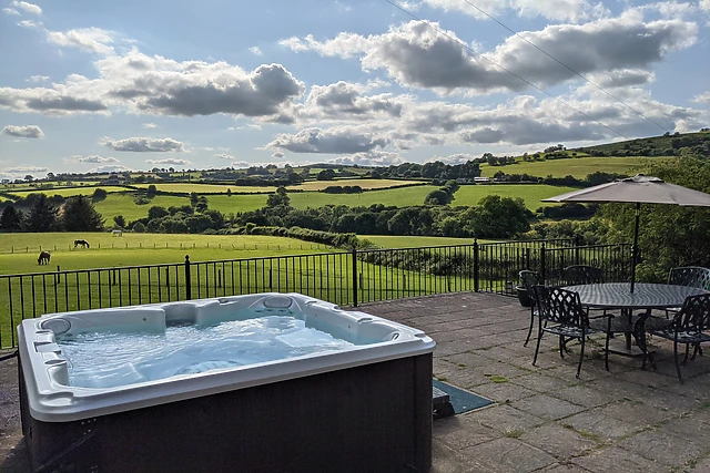 Yes, the accommodation boasts a luxurious Jacuzzi hot tub on the patio, offering guests a relaxing soak with magnificent views of the surrounding countryside.