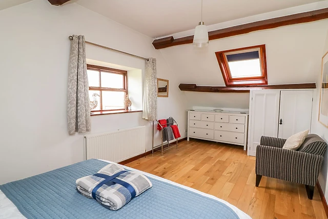 Accommodating up to six guests, this exquisite cottage boasts three cosy bedrooms and two bathrooms, ensuring comfort and privacy for all. The master bedroom features a sumptuous super-king-size bed and an en-suite shower room, promising a restful night's sleep.