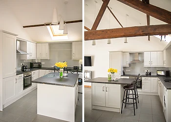 The kitchen is extremely well equipped, and includes a dining area, which offers the chance for you and your loved ones to enjoy a meal together whilst admiring the wildlife and countryside views. Leading from the kitchen is a superb sitting room, where you can relax on the leather sofas and enjoy the flickering light of the cast-iron deluxe electric woodburner-effect fire after a busy day exploring the area.