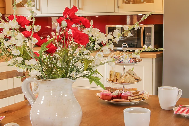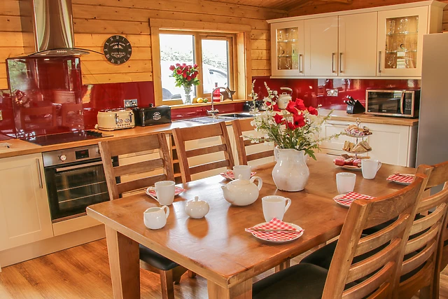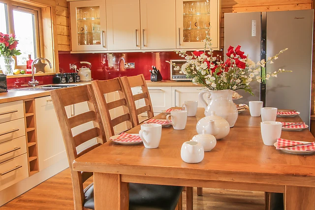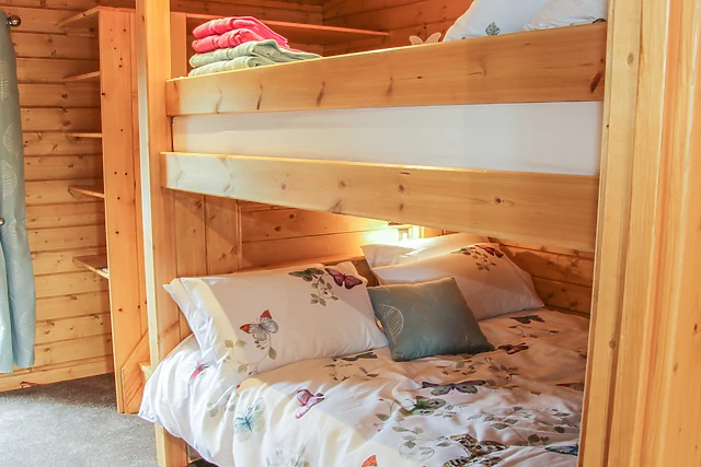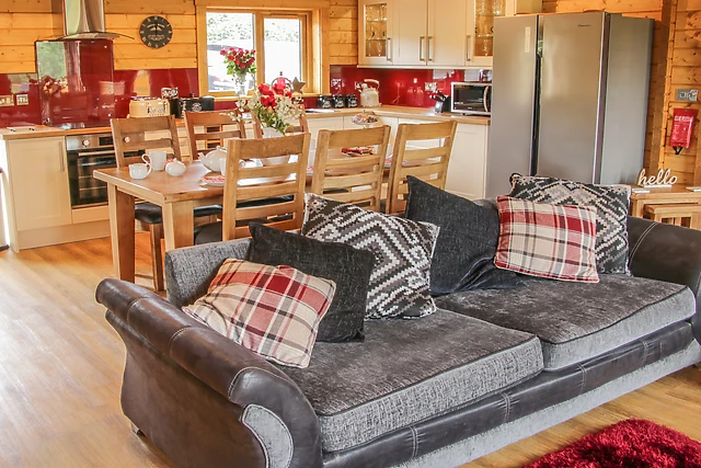 The contemporary, cream kitchen is well equipped with all the amenities you could wish for during your stay, as well as a dining area with seating for 6, where you can enjoy delicious home-cooked meals as a group while reminiscing over the day’s adventures. The lodge includes two bedrooms; a king size bunk bed offers a higher level of comfort for smaller families wanting to share a space, while the master king-size bedroom features an en-suite shower room and ensures less queuing for the bathroom each morning.