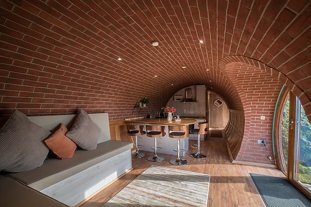 Resting in emerald green hillside looking out upon serene farmland spread across the magnificent Elan Valley on the outskirts of Rhayader in Powys, you will discover the three-bedroom holiday hut of Foxes View. As if straight out of a novel, with a whimsical exterior featuring large round windows and a well-appointed interior with wooden décor, supplemented by fabulous facilities including outdoor furniture, a fire pit, and a private hot tub, this charming dwelling is an idyllic choice for a family or group of sharing friends seeking a fantastic getaway to gorgeous mid Wales.