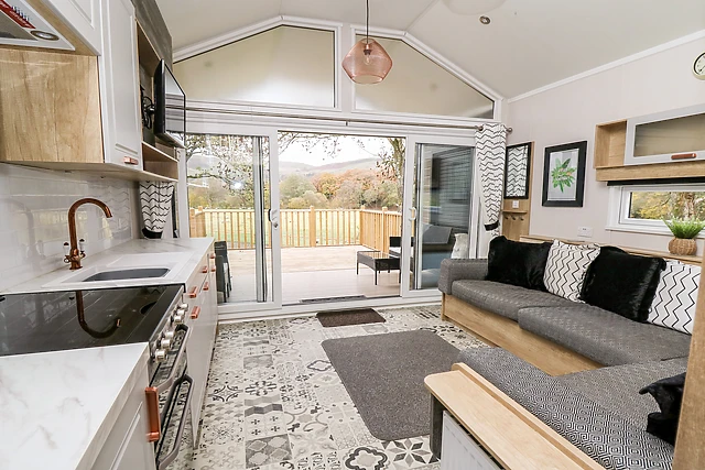 Marvel at your tranquil countryside surroundings as you park up in your private off-road parking space and unload your belongings to begin your staycation. Stepping inside, be charmed by the homely interior of the open-plan living space, flooded with light welcomed in through the floor length windows, enticing you to kick off your shoes and make yourself at home following a lengthy journey.