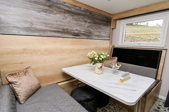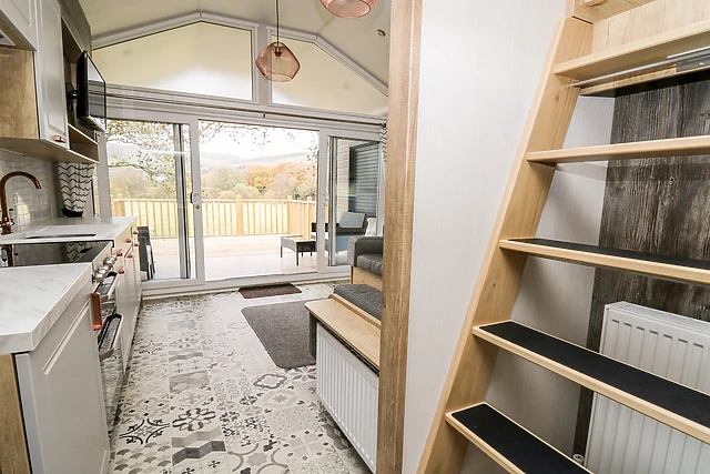 For a truly remarkable experience, soak in the peaceful setting of your holiday home with a luxurious dip amongst the bubbles of the hot tub, enveloped by the unspoilt vistas of the surrounding countryside. As the evening draws to a close, retreat back indoors and climb the quirky ladder to reveal a snug double bedroom nestled on the mezzanine floor, whilst the two pull-out beds in the main living space, offering flexible sleeping arrangements for an additional four guests.