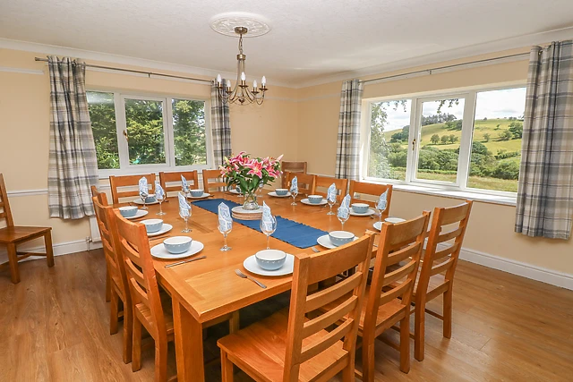 Rurally-positioned in Llanbadarn Fynydd near Newtown, Powys, find this superb eight-bedroom holiday home, Hillside Lodge. Benefitting from a main house with access to an enclosed garden with hot tub, spacious living areas for the whole family, dog-friendly accommodation and a woodburning stove, plus a single-storey annexe, offering some privacy, Hillside Lodge welcomes up to eighteen guests for an escape to Mid Wales.
