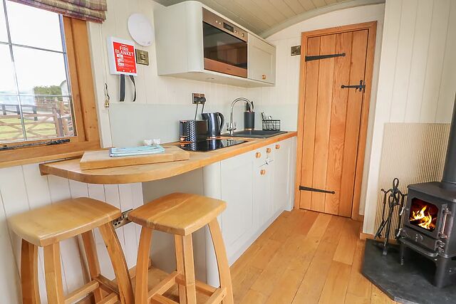 The open plan living area provides a cosy place to sit and enjoy a bite to eat with a well equipped kitchen and warming woodburner, perfect to snuggle up with of a cool evening. The shower room is compact and well-designed maximising.