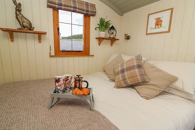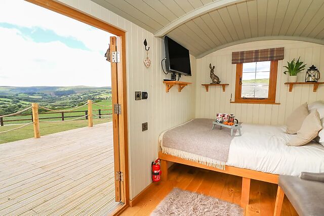 A fantastic shepherds hut, set on the edge of and walking distance from the stunning Gilfach Nature Reserve with fabulous views across the valley. A beautifully styled getaway with panoramic views and cosy welcoming interior makes this ideal for couples to snuggle up on a romantic break away in the undulating hillside of Mid Wales, perfect as a base to explore the diverse local countryside whilst providing a secluded retreat to return back to.