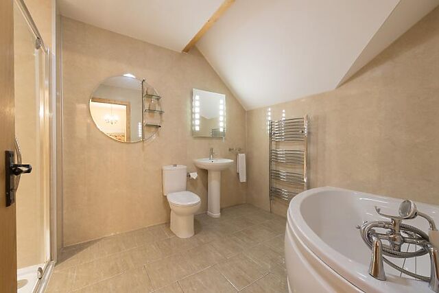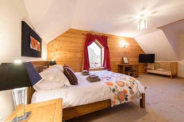 Upstairs, you'll find four more bedrooms, each with its own HD TV. The master bedroom offers a king-size bed and an en-suite shower room, while the other rooms provide a mix of king-size, double, and twin beds.