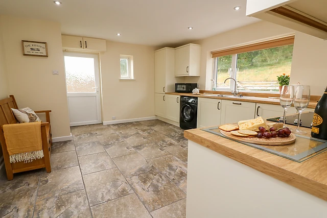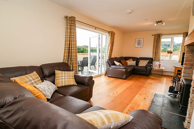 The living/dining room makes the perfect spot to spend quality time with loved ones, where you can light up the woodburning stove and settle down on the sofas in front of the television, or gather at the dining table with a board game brought from home for an evening of family fun. The spacious and contemporary-styled kitchen hosts a good range of appliances and utensils to assist you in your home cooking, with the private patio offering the perfect place to enjoy your evening meals with the rolling countryside as your beautiful backdrop, you can even make the most of the provided barbecue for those relaxed evenings.