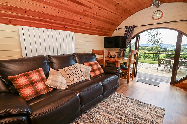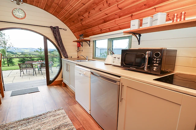 The kitchen is very well equipped with modern decor and the sitting area is complete with comfortable seating with a TV and the picturesque view of the outstanding Powys countryside. The inside of the pod is complete with a cosy yet fresh double bedroom with an en-suite shower room, making it the ideal place to get away from the hustle and bustle and take in this wonderful Welsh scenery.