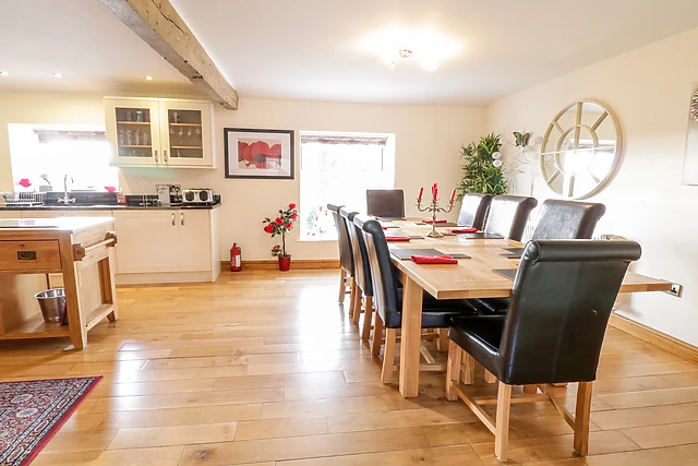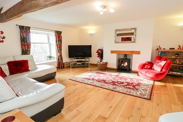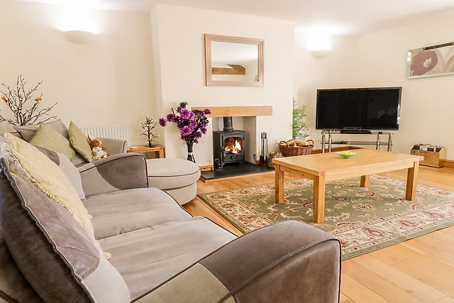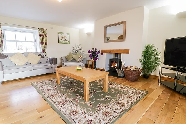 The two kitchens, with dining areas and comfy seating, are extremely well equipped, whilst the charming sitting rooms are each complete with a woodburner, which you can nestle beside after an evening's peaceful soak in the hot tub under the wide starry sky. The spacious south-facing garden also offers a pretty patio area, perfect for dining alfresco after a refreshing morning swim in the large pool, which is housed in a separate building just a few seconds' stroll from the property.
