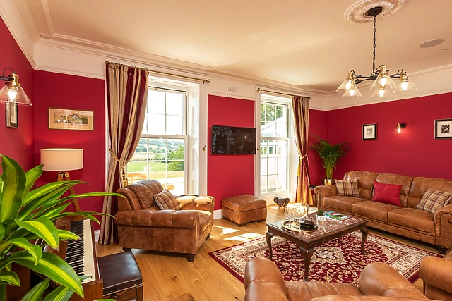 Nestled in the Welsh countryside in the small village of Aberhafesp in Powys, Wales is the Old Rectory House. This decadent holiday home boasts luxurious bedrooms, off-road parking for ten cars, a unique cinema room, swimming pool and expansive garden with a hot tub surrounded by the luscious rolling Welsh fields, making this a wonderful setting for a family gathering in the countryside.
