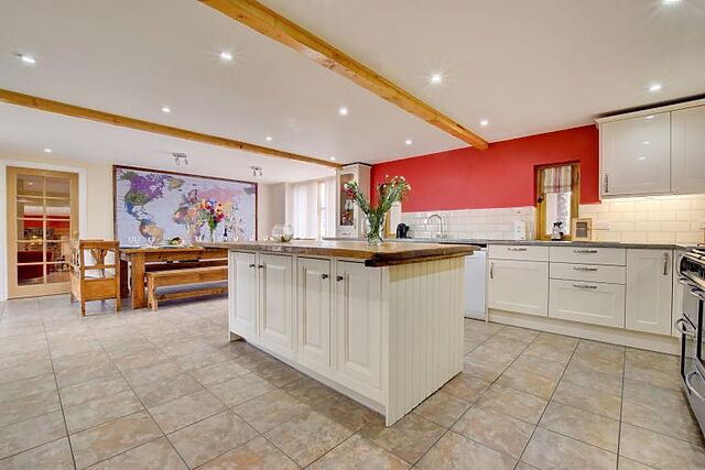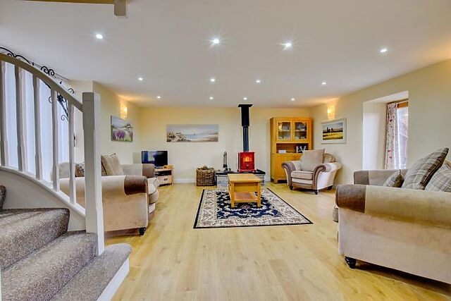 Each house is well-equipped with cosy lounges featuring wood burners, fully-fitted kitchens, and ample dining spaces. The Farmhouse includes a dining table for eight, while the Barn can seat twelve.