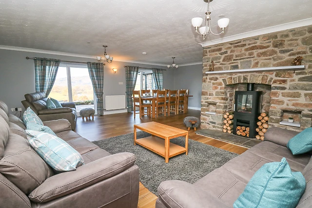 Benefit from a well-equipped kitchen and utility, where you'll find state-of-the-art appliances to help ease your stay, including a washing machine, dishwasher, and an electric oven, offering the ideal space to prepare meals and keep on top of your laundry. To dine, travel into the open-plan living/dining room, boasting direct views of the surrounding mountains, where you can gather as a group, and enjoy a film night in on 43" TV.