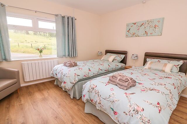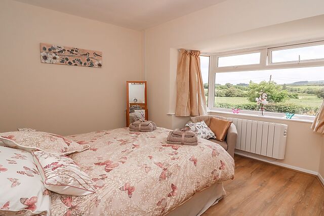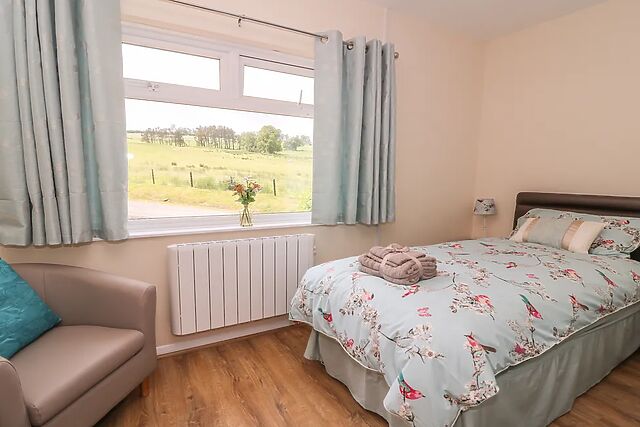 The master double room benefits from countryside views, perfect to watch the world go by with a cup of tea and is adjacent to the equally cosy twin room. Step outside to a myriad of views from all angles, sit and enjoy them on the patio, perhaps toast a few marshmallows on the fire pit or relax in the enticing hot tub.