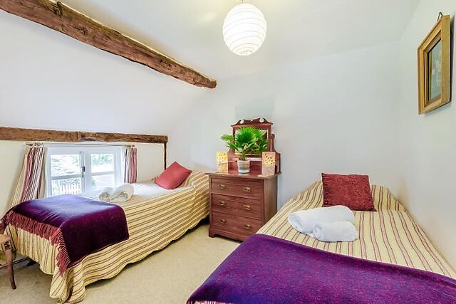 Upstairs, the accommodation includes a characterful double room with countryside views and a charming twin room.