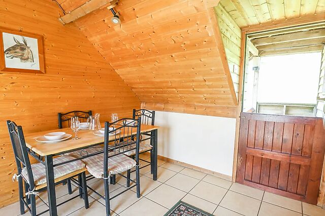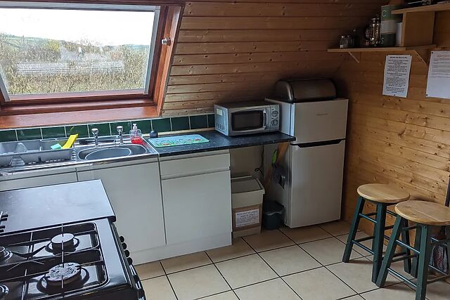 Climb the 13 steps to find yourself among the eaves in a lovingly refurbished space with Velux windows framing idyllic views. You can prepare basic meals in the kitchen/diner, complete with a gas oven and hob, microwave, and fridge/freezer, along with a table seating four guests.