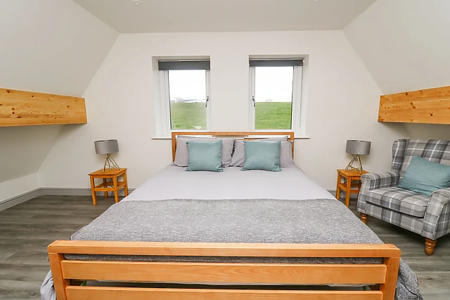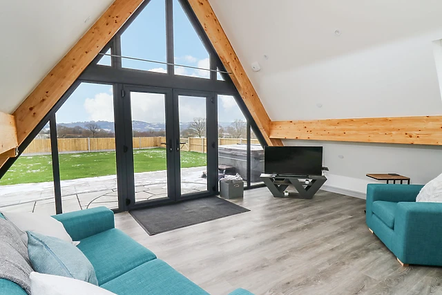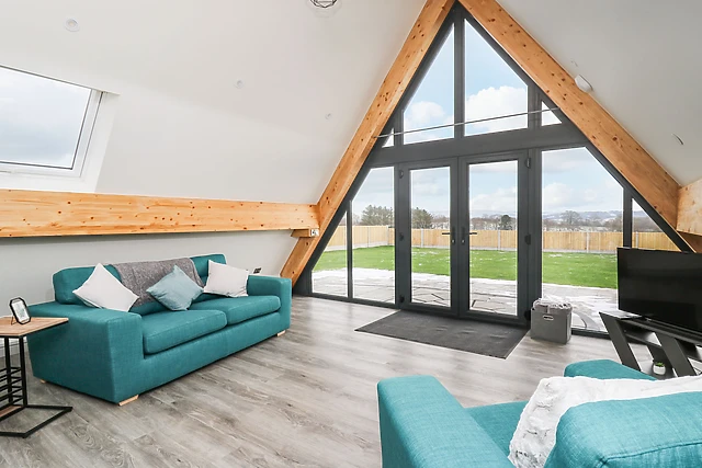 Indulge in the comfort of the king-size bed and pamper yourself in the sleek shower room. The open-plan living space, complete with a fully-equipped kitchen, dining area, and sitting area, is warmed by electric underfloor heating, ensuring a cosy atmosphere throughout your stay.