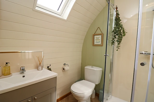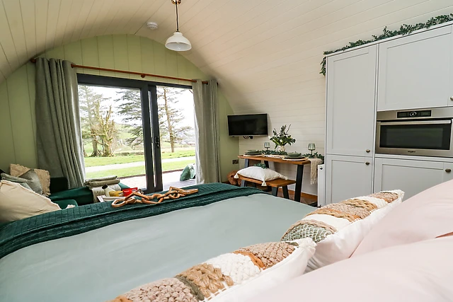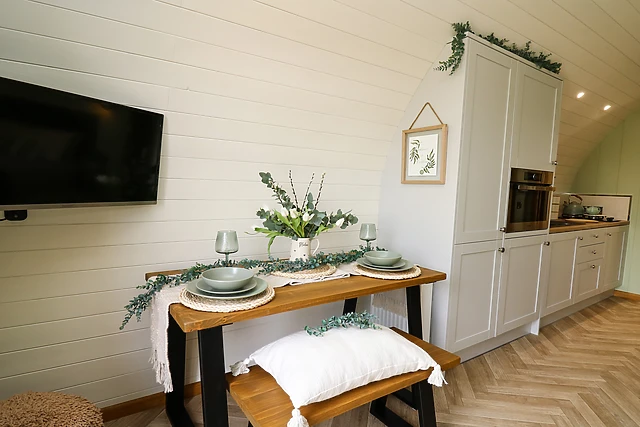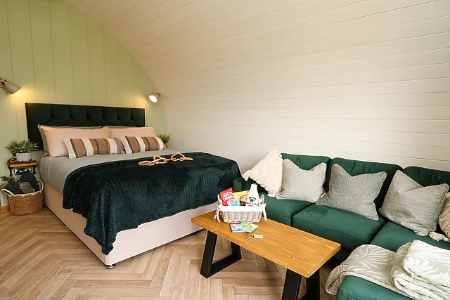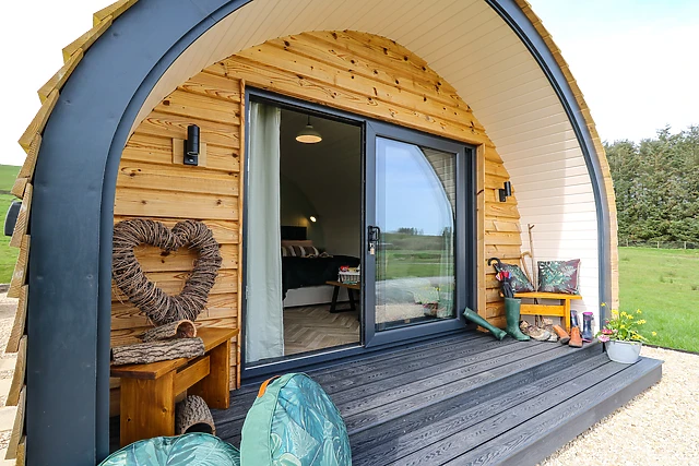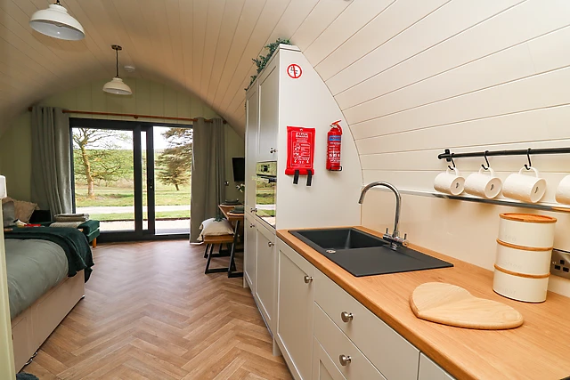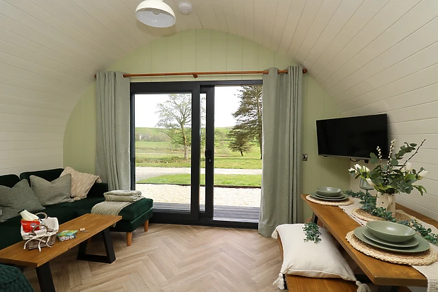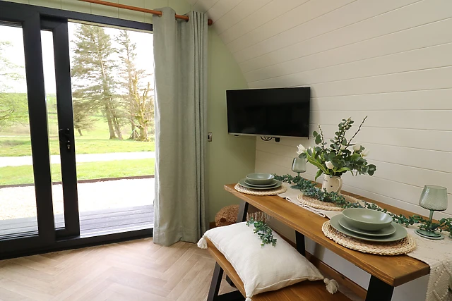Reach this hidden gem, park off-road and be welcomed into this contemporary, wooden pod, a tasteful abode featuring large patio doors. From here, enter the property and discover a studio-style layout with a double bed, as well as a kitchen with a good selection of amenities, a dining space, and a sitting area with a Smart TV, providing everything you need for a self-catering stay.