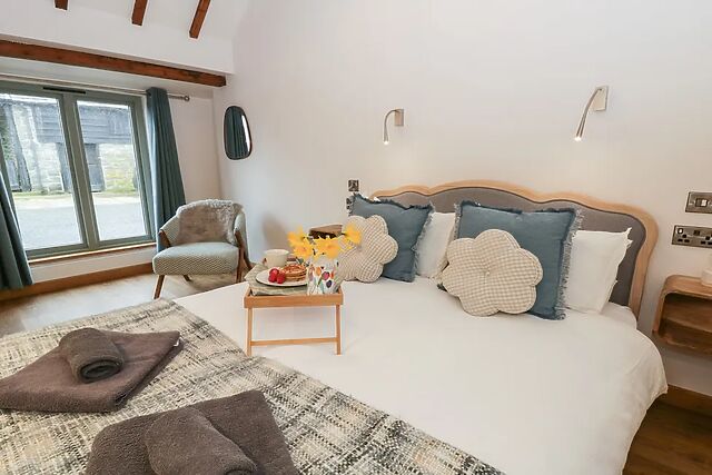 Wander over to the kitchen, where crisp white fixtures and wooden worktops make unpacking local produce and preparing unhurried meals a pleasure, before sitting down together to dine and plan the days ahead. After countryside walks and fresh air adventures, return to the bathroom to freshen up, running a bath and easing tired legs, then retreat to the bedroom and sink into the king?size bed for a relaxed evening.
