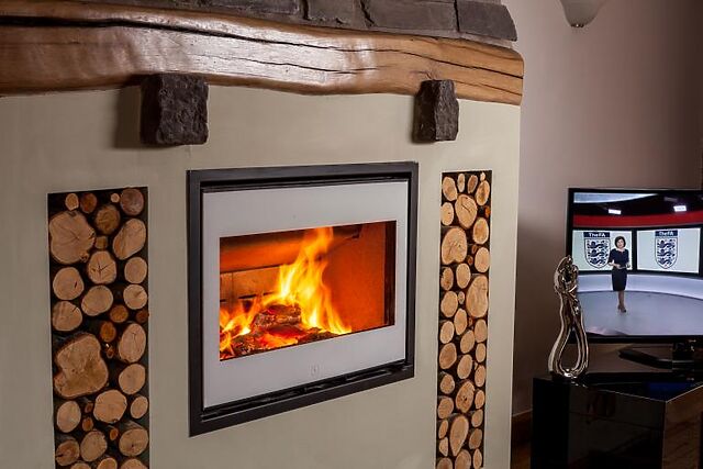 The ground floor features a disabled-friendly bedroom with rise and recline beds that can be made into a double. The living room is the heart of the home, boasting a cosy wood-burning fireplace and a large, sumptuous sofa.