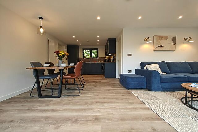 Head to the chic kitchen area to whip up some dinner to share at the lovely dining table. Afterwards, head back to the lounge area to catch up on your favourite TV shows and relax by the electric-effect fire.