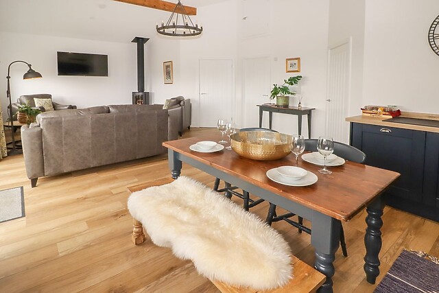 You are welcomed into this delightful home from the property’s front terrace through French doors leading into the modern style living space. Offering a spacious place for guests to cook a meal of your favourite cuisine in the kitchen whilst discussing holiday delights with your family whom are relaxing in the living area in front of the recently lit fire.