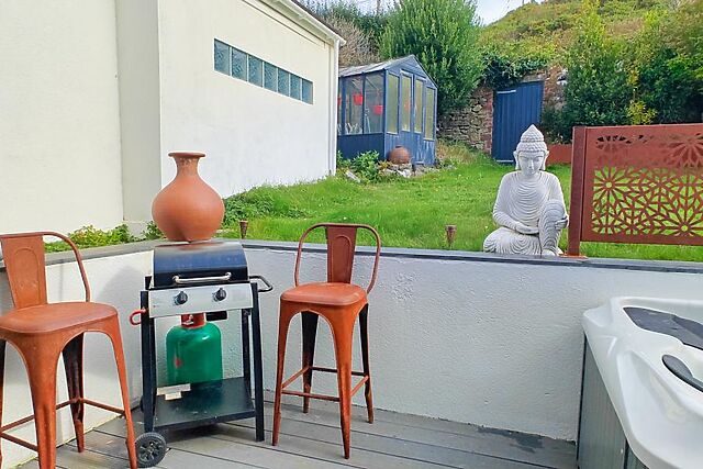 The lounge has comfy seating and a Smart TV, and enjoys sea views and access to a decked balcony. The ground floor also features a welcoming double bedroom, perfect for guests seeking easy accessibility and benefits from direct access out on to the front terrace.