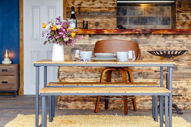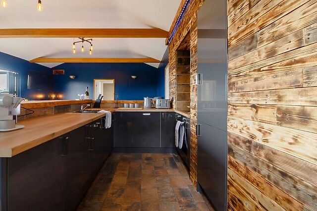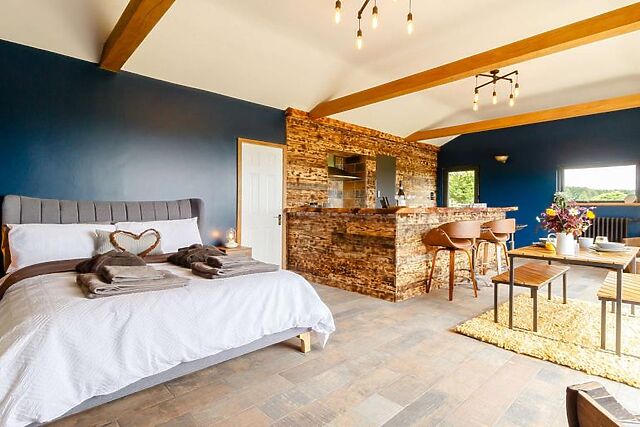 There's also a 50-inch TV for cosy evenings in. Even your furry friend is catered for with a special whiskey barrel bed.