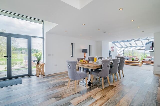 Other nearby attractions include Raglan Castle, Big Pit Museum, Brecon Beacons National Park, Wye Valley Area of Outstanding Natural Beauty, Chepstow Castle and Chepstow race course. Ground Floor Open plan lounge and dining area with large table and stylish chairs.
