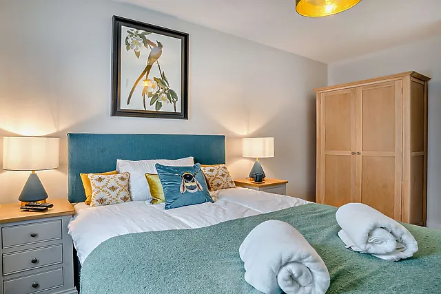 The accommodation boasts three bedrooms, comprising two king-size rooms and one bunk bedroom, comfortably sleeping up to six guests.
