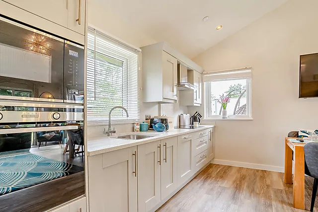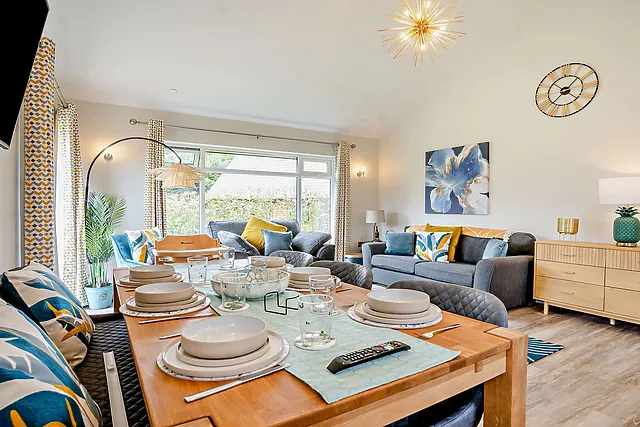 Experience the epitome of relaxation in the open-plan living space, boasting modern interiors and sumptuous soft furnishings. The lodge is equipped with a state-of-the-art kitchen, ensuring you have everything you need for self-catering ease.