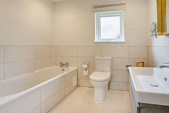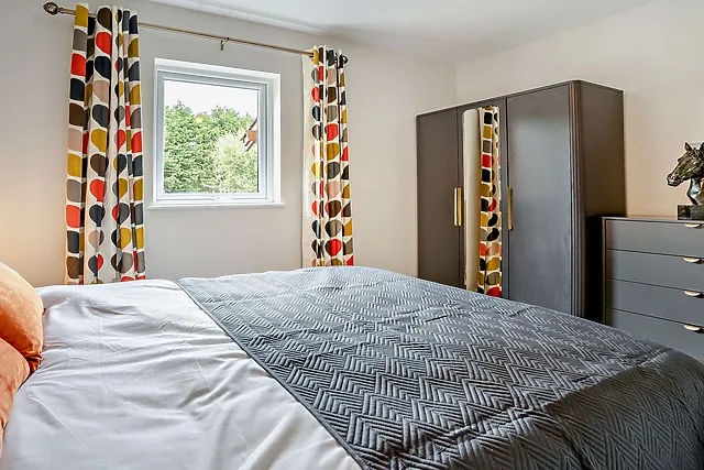 The accommodation features three stylish bedrooms, two with king-size beds and one with a bunk bed, catering to various group sizes and family needs.